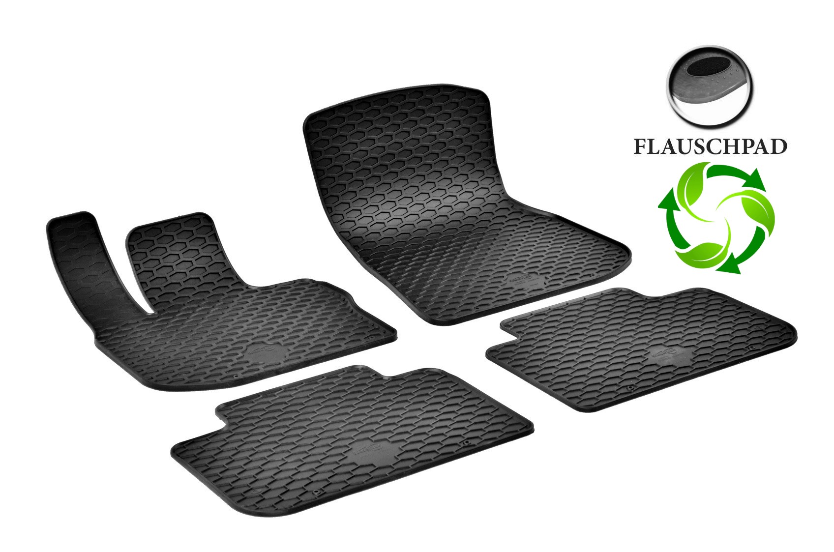 Tyto speciální koberce se již nemusí dále upravovat, protože vhodně kopírují tvar podlahy vozu. Zvýšený obvodový okraj a jednoduchý, ale funkční vzor chrání interiér vozu před nečistotami a zajistí tak dokonalou čistotu Vašeho vozu. Ze spodní části jsou koberce upraveny protiskluzovou vrstvou s nopy. Koberec řidiče je navíc vybaven fixačními prvky, které zamezí jakémukoliv pohybu.