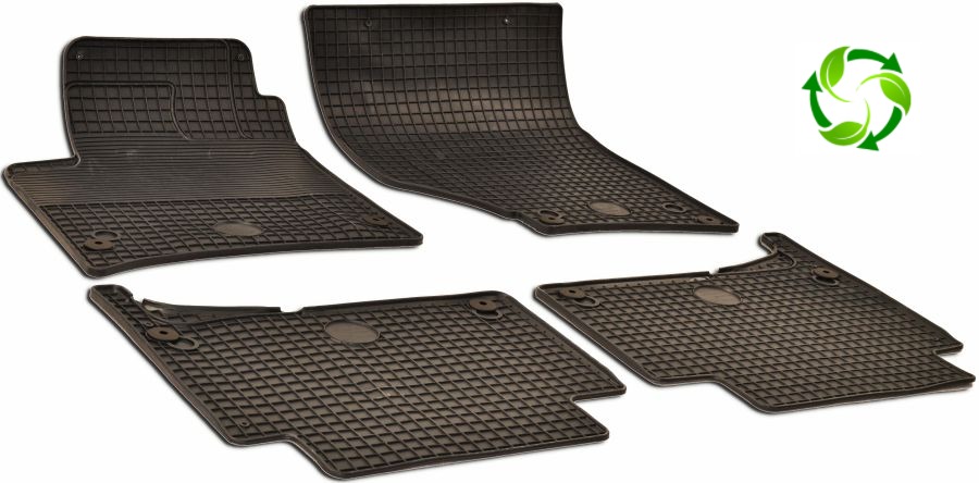 Tyto speciální koberce se již nemusí dále upravovat, protože přesně kopírují podlahu vozu. Vysoký obvodový okraj a jednoduchý vzor chrání interiér vozu před nečistotami a zajistí tak dokonalou čistotu Vašeho vozu. Koberce jsou ze spodní části upraveny protiskluzovou vrstvou s gumovými nopy. Koberec u řidiče je navíc vybaven fixačními kroužky, které zamezí jakémukoliv pohybu koberce.
